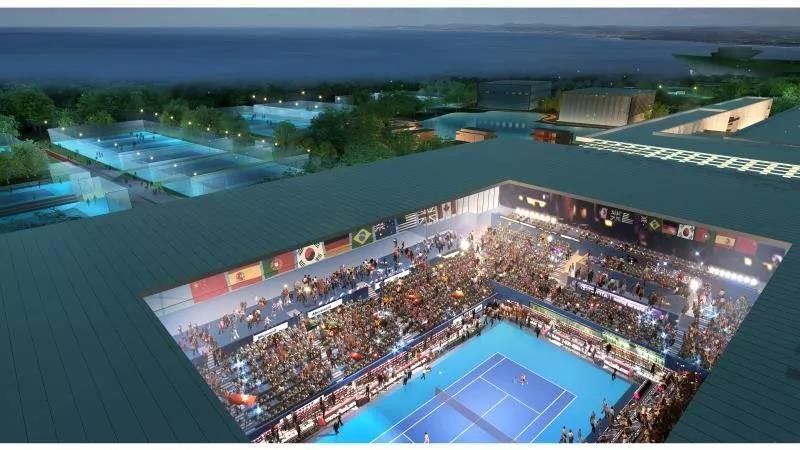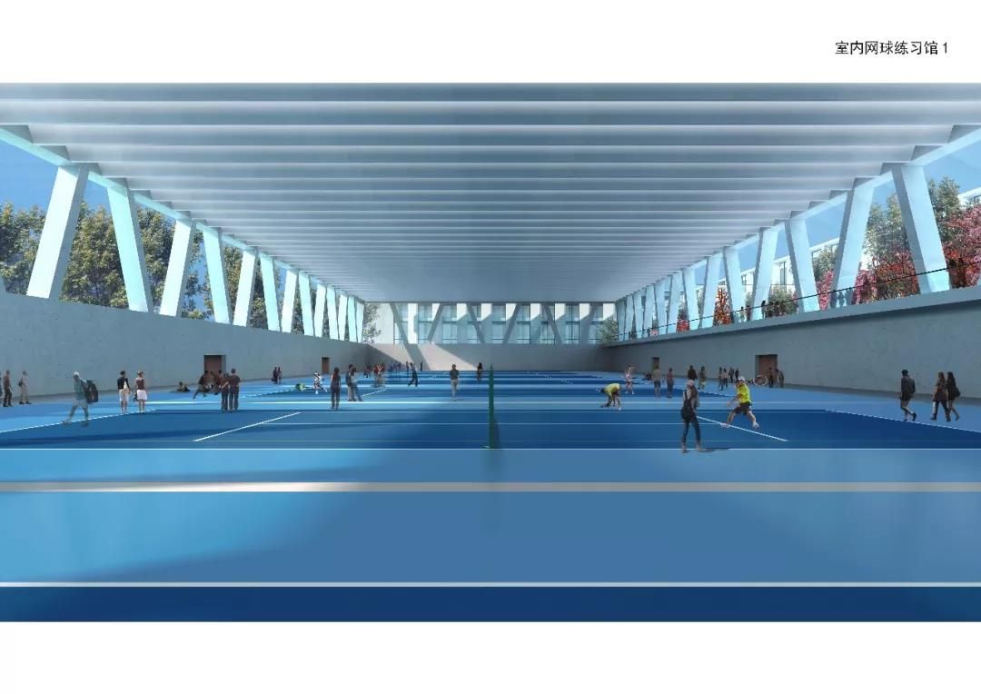 主要建設(shè)中心賽場,室內(nèi)網(wǎng)球練習(xí)館(含常規(guī)場地、網(wǎng)球中心配套用房、VIP室內(nèi)場地及其配套服務(wù)用房、學(xué)員公寓)單跨跨度約42米,室內(nèi)網(wǎng)球練習(xí)館(紅土場地),籃球館,教員公寓,室外網(wǎng)球比賽場,室外網(wǎng)球練習(xí)場及地下停車場。