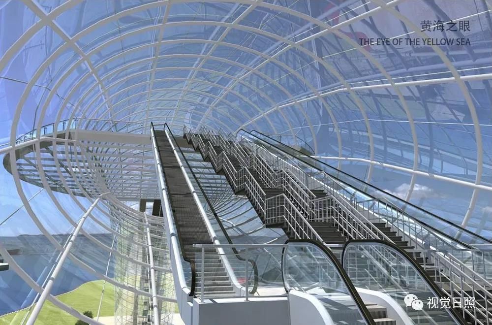 “黃海之眼”項目位于日照世帆賽基地出海口,由著名建筑師、城市設計師渡堂海(張家界大峽谷玻璃橋設計者)提出概念性方案設計,著名空間結構工程師川口衛與中建八局第二建設有限公司設計院共同設計主體鋼結構,設計理念為“日出之城、黃海入口”,寓意即為“冉冉升起的太陽”,又為“黃海明亮的眼睛”。