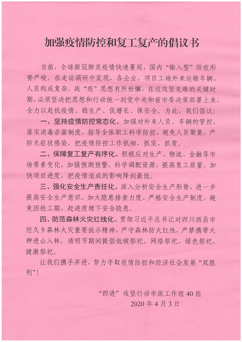 加強疫情防控和復工復產的倡議書